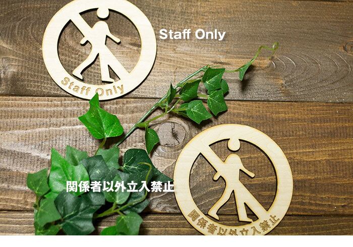 木製サインプレート 関係者以外立入禁止 Staff Only レーザー加工 丸型 ウッドプレート ナチュラル ピクトサイン 各種【クリックポスト対応】