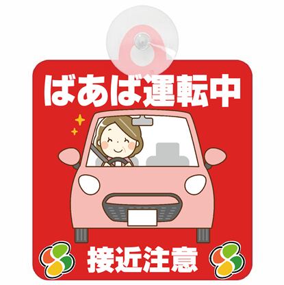 大切なおばあちゃんを守る為に!あおり運転防止に! セーフティサイン セーフティーサイン ばあば運転中 接近注意 おばあちゃん イラスト 可愛い 高齢者マーク SENIOR SAFE DRIVER シルバーマーク 安全運転 敬老の日 プレゼント 吸盤タイプ あおり運転 対策 7カラー 各種