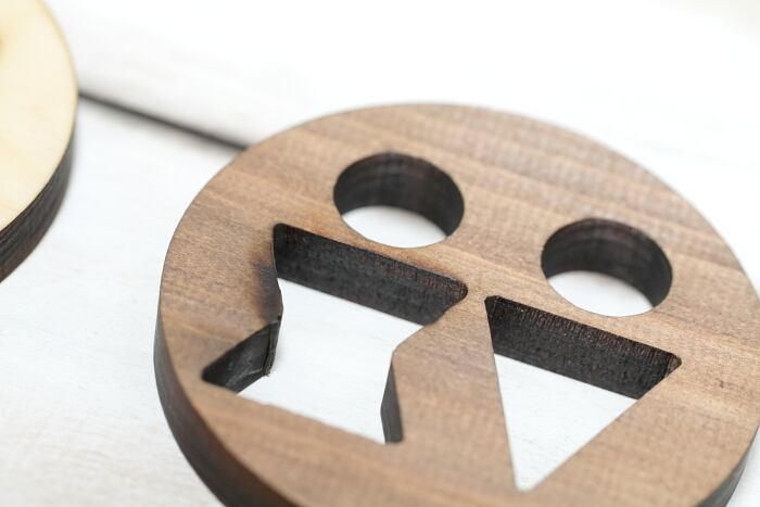四角と丸の木製ドアプレートを各2色制作しました。