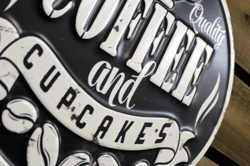 アンティーク調 TINプレート COFFEE BLACK コーヒー&カップケーキ サインプレート ブリキ